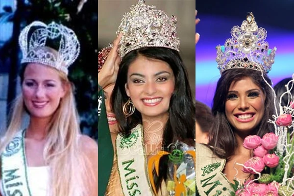 Las tres coronas usadas a lo largo de la historia de Miss Tierra.